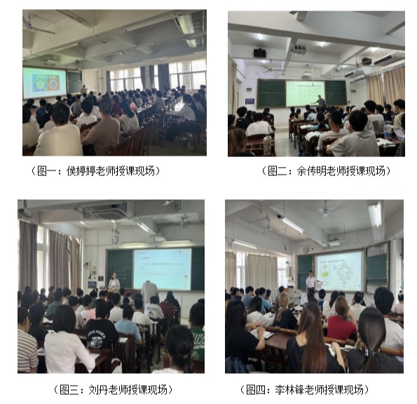学院着重邀请教学成果丰硕、经验丰富的优秀中青年教师担当主讲。侯婷婷老师以《分析化学》中配位化合物为主题,采用模块化教学设计,将配位化合物抽象理论与具象图表相结合,借助生活案例剖析配位化合物的基本组成与平衡原理;余传明老师以《有机化学》中醇、醚、酚等知识点为例,利用动态三维分子模型突破教学难点,巧妙融入思政元素,结合生活实例增强教学现实意义;刘丹老师在《普通化学》课堂上,采用“复习导入+互动探究”的教学方法,引入“沉淀溶解的平衡”核心内容,结合碳排放热点,实现知识传授与价值引领相统一;李林锋老师讲授《环境生物化学》时,以板书层层拆解知识逻辑链条,用课件动态呈现抽象生化过程,通过理论解析与生活实例的双线交织,将糖类分解代谢的复杂机制转化为清晰易懂的知识图谱。四位教师凭借扎实的专业功底与创新的教学理念,将现代化教学手段与课程内容深度融合,在课堂上充分展现了新时代中青年教师的教学风采。