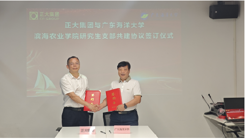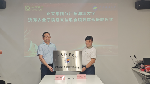 座谈会上,正大集团广东湛江、海南区人力资源总监郭峻宇详细介绍了正大集团发展历史沿革及企业愿景,双方围绕研究生联合培养机制与毕业生就业对接等议题展开深入交流并达成合作意向。我校滨海农业学院与正大(湛江)现代农业投资有限公司签署合作协议,与会人员共同为“滨海农业学院研究生联合培养基地”揭牌。