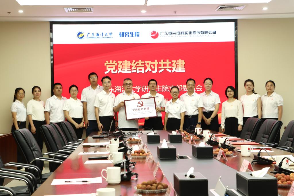 为推动党建与业务“双融双促”,6月13日,研究生院院长兼党支部书记叶国栋率支部全体党员赴广东恒兴饲料实业股份有限公司(以下简称“广东恒兴”)开展支部结对共建活动,并参观国家863计划项目海水养殖种子工程南方基地(以下简称“国家863基地”)。
