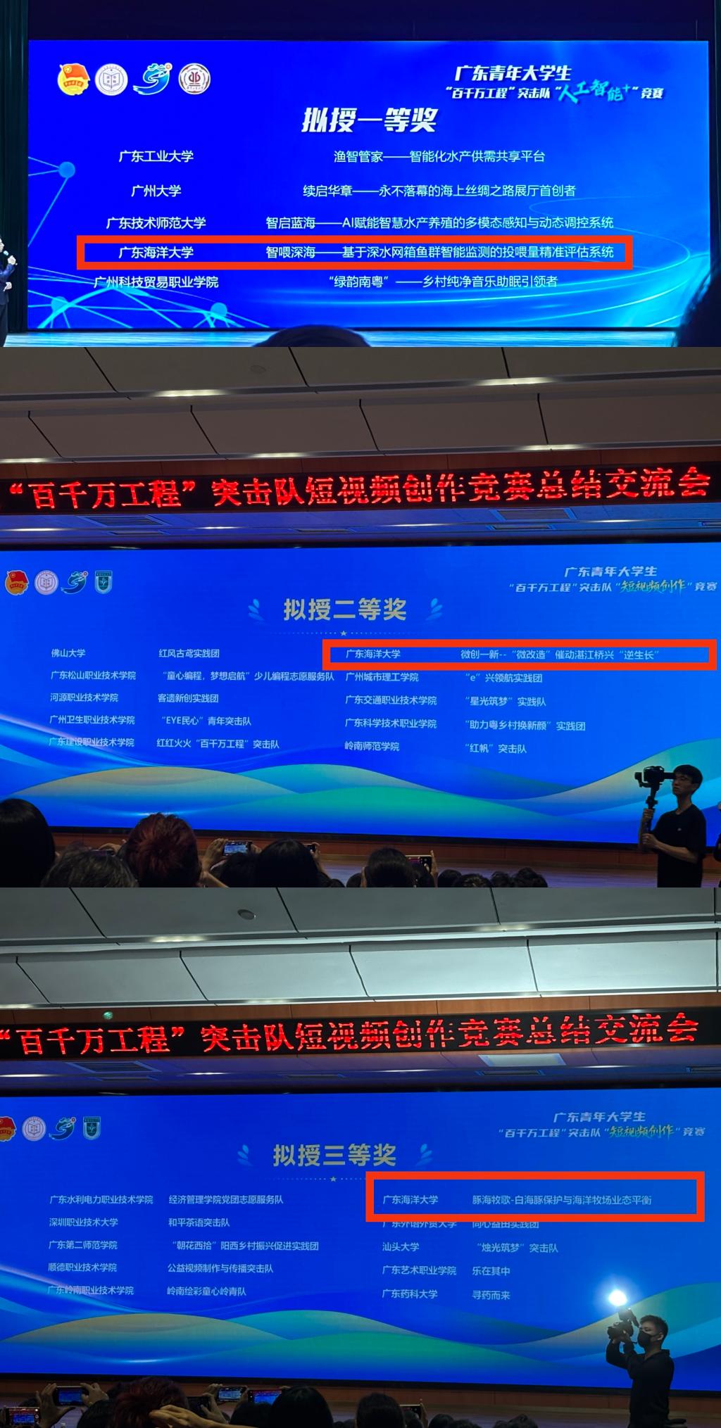 该竞赛吸引了全省超200支高校突击队参与,覆盖智慧农业、产业升级等领域。在聚焦人工智能技术落地的“人工智能+”专项赛中,我校作品《《智喂深海》——基于深水网箱鱼群智能监测的投喂量精准评估系统》荣获一等奖。《智喂深海》作品紧密对接海洋产业需求,运用人工智能技术解决水产养殖中渔业监测等痛点,为沿海县镇提供高效养殖方案,彰显我校在“AI+海洋”领域的硬核实力。在“百千万工程”短视频创作竞赛中,我校“微创一新”突击队以纪实手法与创意表达交融的作品获二等奖;“豚海牧歌”突击队获三等奖我校两支获奖突击队深入县镇村,以镜头捕捉海洋文化及产业新貌,让乡村故事“破圈”传播,助力文旅与特色产业振兴。