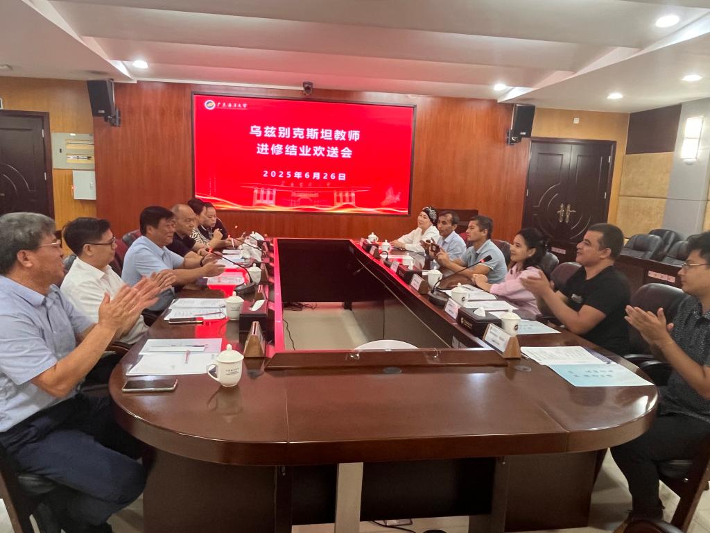 6月26日,我校在湖光校区四楼会议室为乌兹别克斯坦塔什干国立东方农业大学选派的进修教师举办结业欢送会。国际交流合作部部长陈进军、水产学院副院长陈华谱、国家耐盐碱水稻技术创新中心华南中心副主任江行玉及培训主讲教师代表出席。会议由科学技术部副部长刘劲科主持。