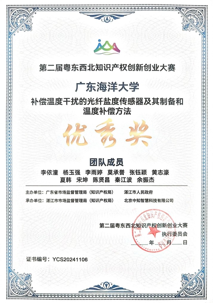 7月2日,第二届粤东西北知识产权创新创业大赛(简称“粤创赛”)颁奖仪式在湛江举行。历经初赛、复赛、决赛激烈角逐,我校食品科技学院钟赛意教授主持的参赛项目“海洋生物源肝素制备关键技术与应用”脱颖而出,荣获大赛银奖,电子与信息工程学院李依潼博士主持的项目“补偿温度干扰的光纤盐度传感器及其制备和温度补偿方法”获得优秀奖(发明专利组),我校是唯一有参赛项目进入决赛的高校。
