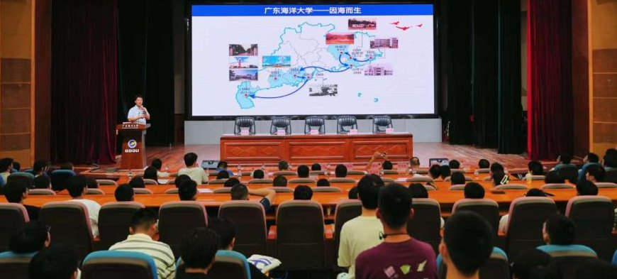 9月16日上午,电子与信息工程学院党委书记袁仁广为2025级900余名新生讲授题为《我与海大共进 挺担当谱新篇》的思政第一课,课程分两场进行。