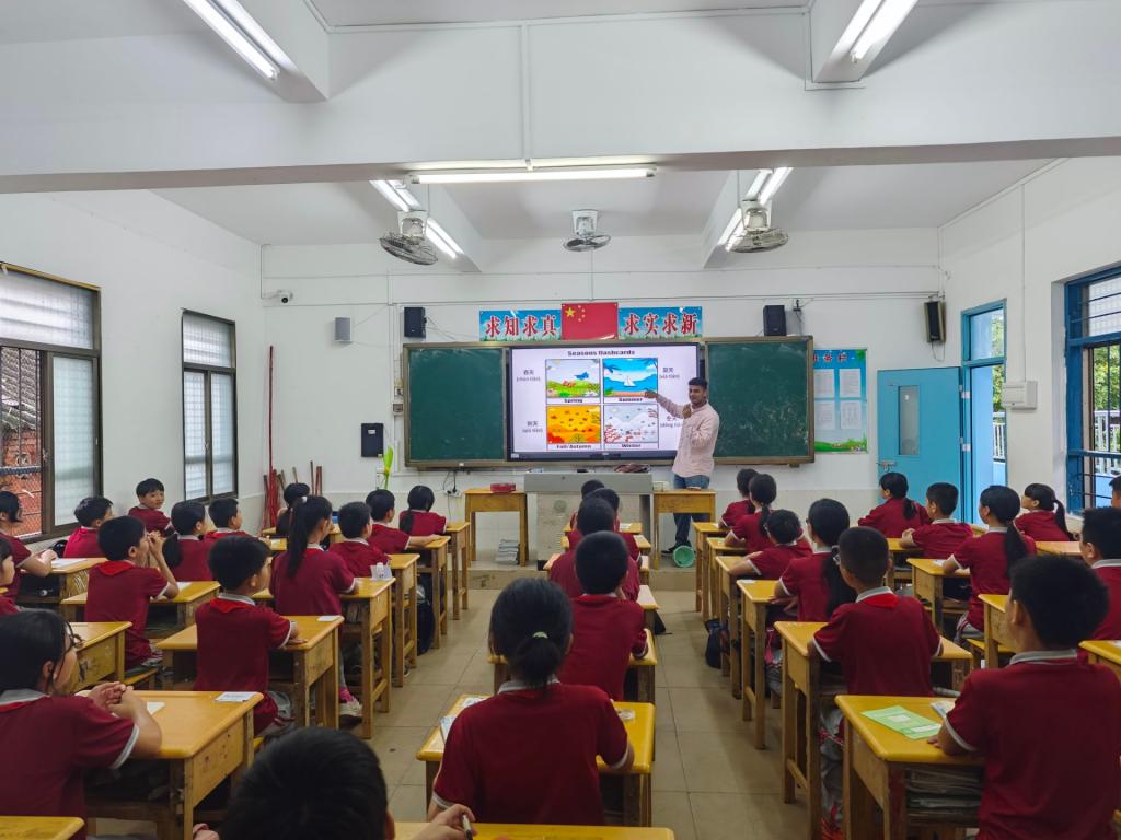 9月17日上午,我校国际交流协会带领留学生代表20余人赴雷州第二小学,开展主题为“中外携手助成长,英语支教暖校园”的英语支教活动。