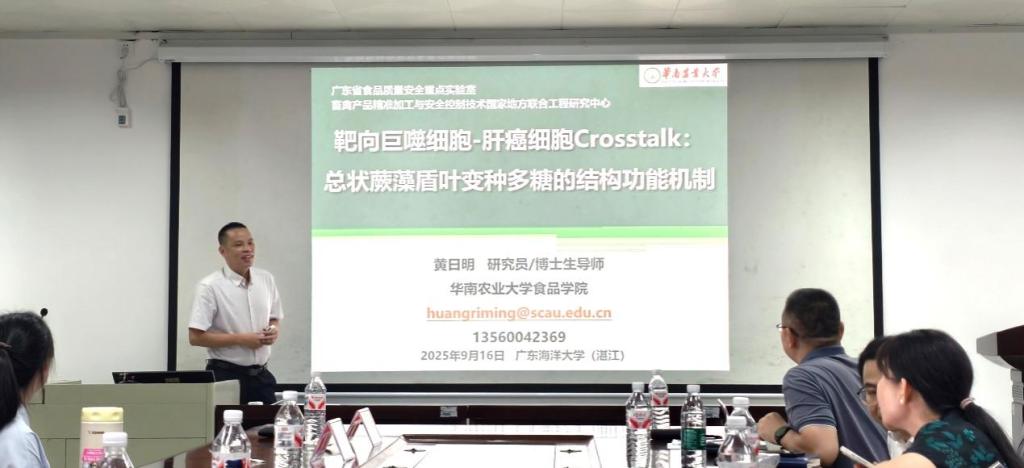 9月16日上午,香港浸会大学刘琴博士与华南农业大学黄日明教授应邀到食品科技学院,在望海楼A105会议室带来专题学术报告。报告会由学院副院长高加龙主持,钟赛意教授、张杰良教授及海洋功能因子与营养健康创新团队部分教师、研究生共100余人现场聆听报告。