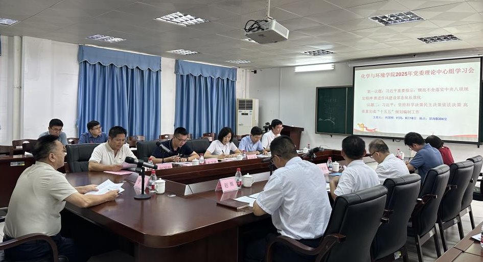 9月18日,化学与环境学院党委理论学习中心组学习(扩大)会议在望海楼B304会议室召开。学校党委常委、副校长宁凌列席旁听。会议由学院党委书记何国明主持,学院领导班子成员、党委委员、纪委委员、组织员、各党支部书记、系(中心)正副主任及旁听工作小组成员参加会议。