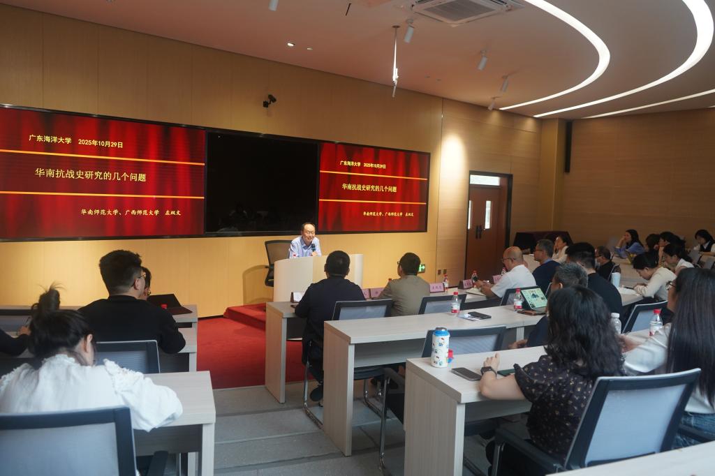 报告中,左双文教授围绕华南抗战史的核心议题展开论述,深入剖析了中国为什么要“奋起抵抗”的时代背景与核心动因,还原了抗战爆发前后的复杂局势;聚焦中共在南方革命的战略布局,阐释了党在华南地区的革命部署与历史根基;系统分析华南正面战场的战略价值及其独特性,展现了华南军民在抗战中的重要贡献;深入解读了中共华南敌后抗战的历史意义,凸显了敌后战场在全民族抗战中的战略支撑作用。整场报告既有宏观的历史脉络梳理,又有微观的历史细节考证,让在场师生对华南抗战的历史地位、战略意义及精神内核有了更全面、更深刻的认识。