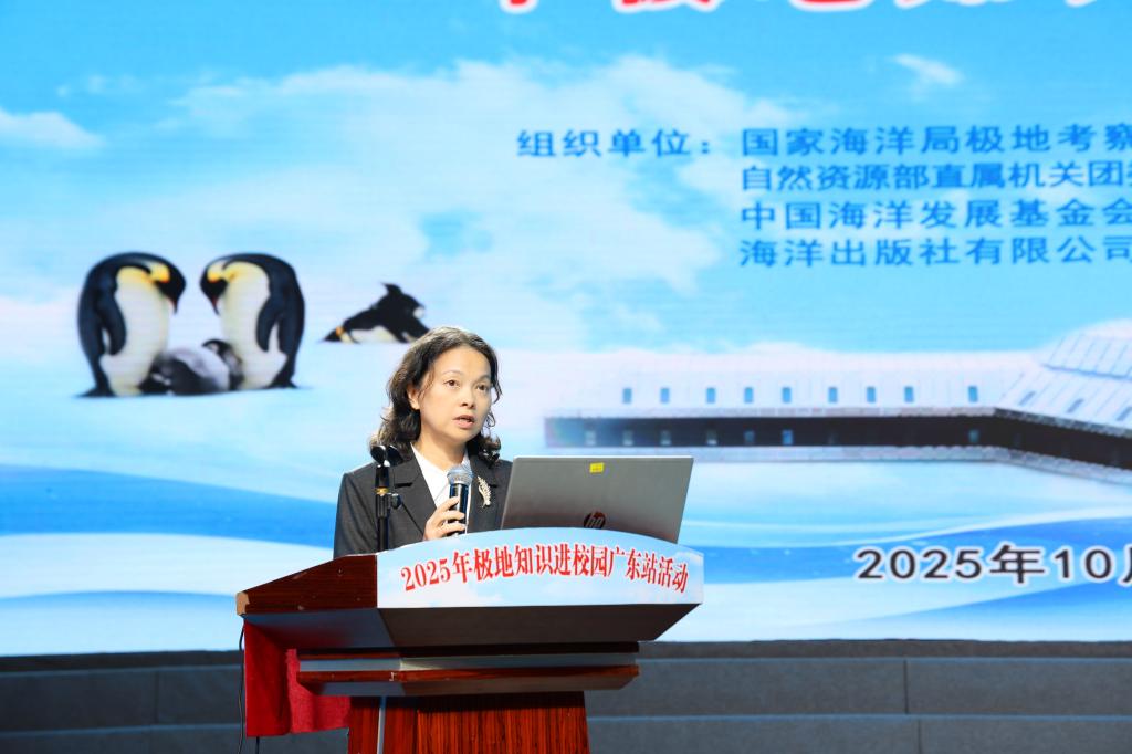 活动在《冰路征程——中国极地考察40周年》和《中国南极秦岭站建设纪实》两部纪录片的震撼画面中拉开帷幕。随后,国家海洋局极地考察办公室综合处处长吴雷钊、广东省自然资源厅海洋规划与经济处处长杨德倩分别致辞,表达了对我校承办本次活动的感谢,并强调极地事业对国家海洋强国战略的重要意义。