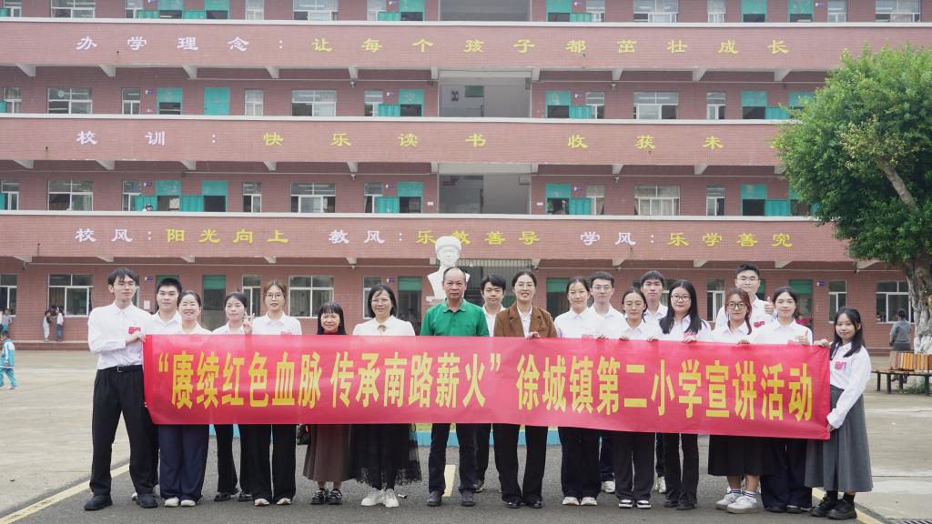 为纪念红军长征胜利89周年,缅怀革命先烈、传承红色基因,推动“双百行动”走深走实,10月30日,我校“讲好南路革命故事”宣讲团28名师生赴徐闻县第三中学与徐城镇第二小学,联合开展“‘讲好南路革命故事’宣讲进校园暨纪念红军长征胜利89周年”主题活动。