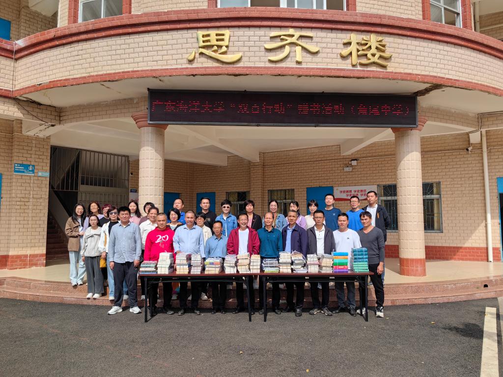 为深入推进“双百行动”,促进教育均衡发展,助力全民阅读,11月5日,我校图书馆赴徐闻县角尾中学开展图书捐赠活动,以实际举措支持乡村基础教育,搭建高等教育与中学教育之间的资源桥梁。