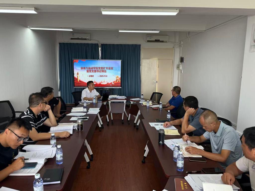 11月6日,体育与休闲学院党委在广学楼901会议室召开党委扩大会议和党支部书记例会,传达学习党的二十届四中全会精神,研究部署贯彻落实工作。会议由学院党委书记王明对主持,学院领导班子成员、党政办主任、专兼职组织员、党支部书记、系部中心主任、团委书记和辅导员参加会议。