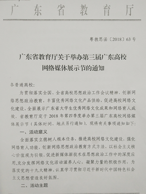 转发广东省教育厅《关于举办第三届广东高校网络媒体展示节》的通知