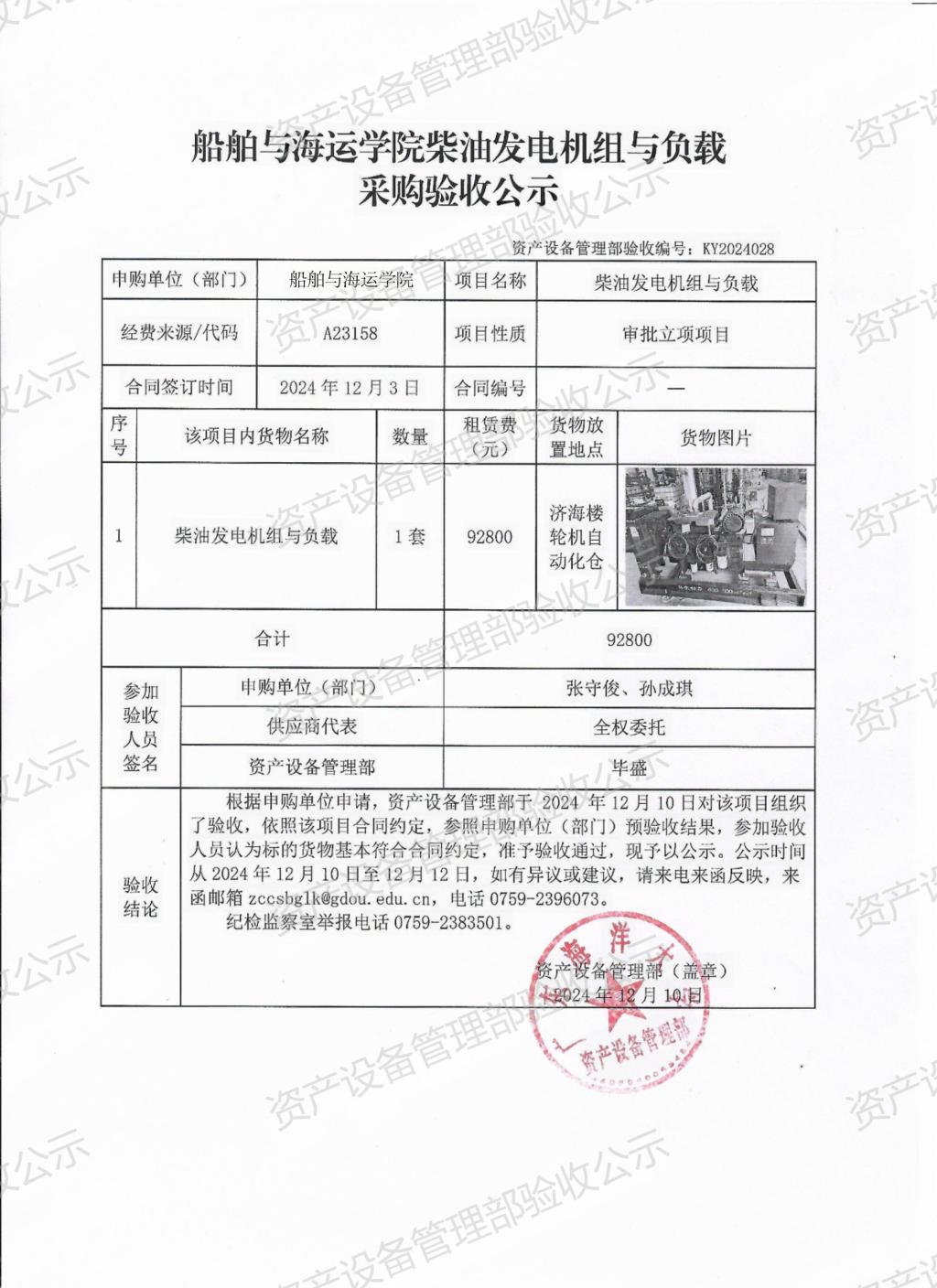 船舶与海运学院柴油发电机组与负载采购验收公示