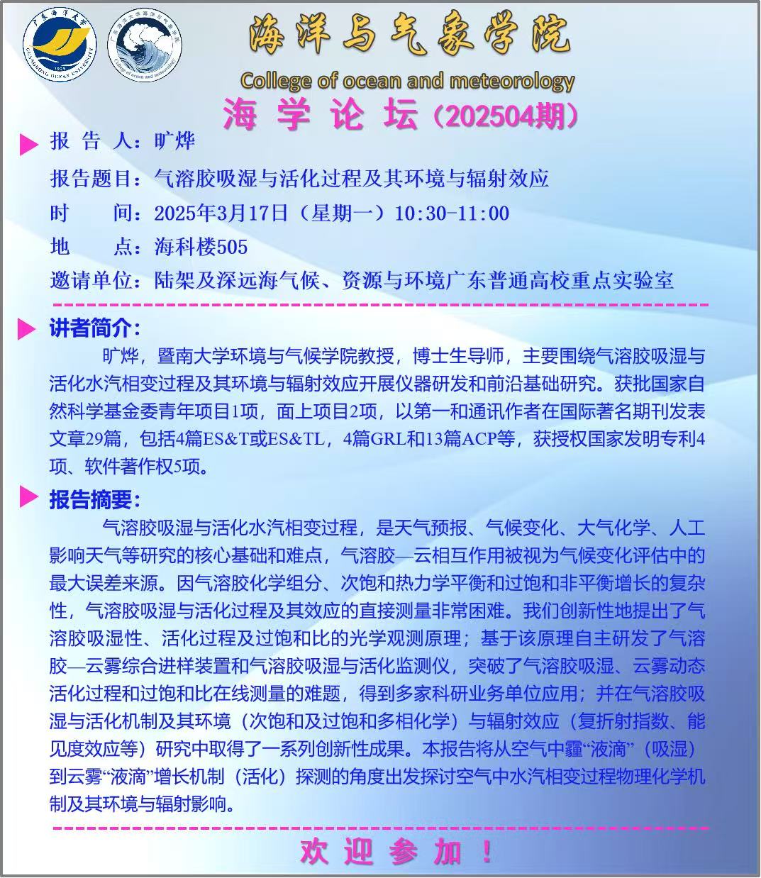 海洋与气象学院“海学论坛”(202504期)