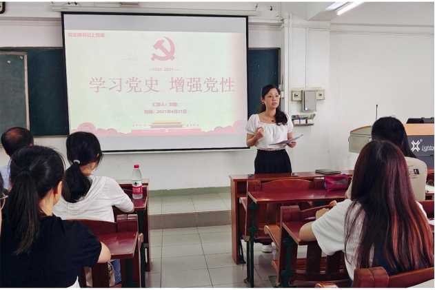 4月21日下午,文学与新闻传播学院学生第一党支部在主楼705开展“学习党史,增强党性”主题党课活动。会议由党支部书记刘敏老师主持,支部全体党员参加。