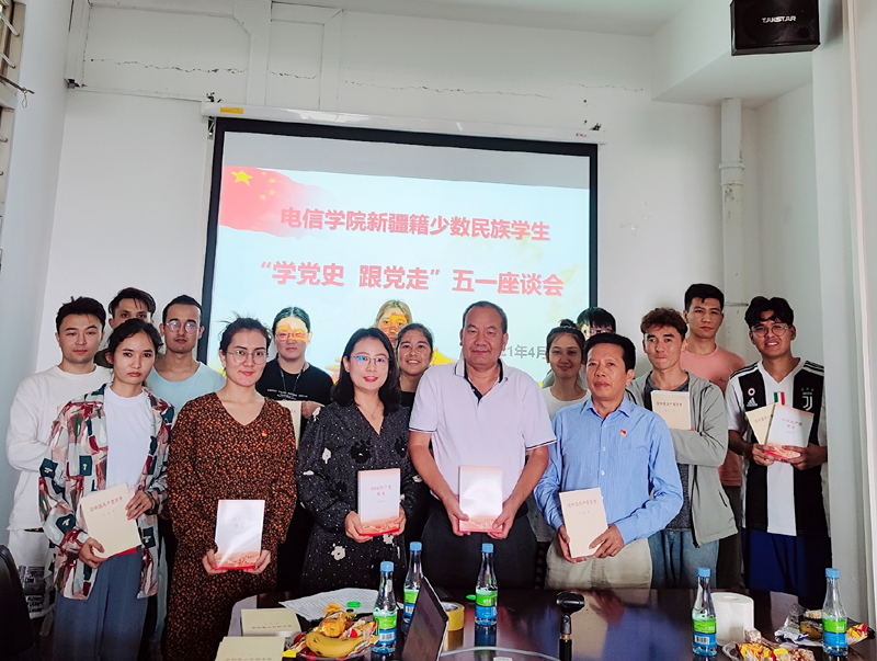 4月29日,电子与信息工程学院在科技楼A409会议室召开新疆籍少数民族学生“学党史 跟党走”座谈会,学院党委书记宋雅、党委副书记聂杰、学生处新疆学生专职辅导员谢米希开买尔·买买提、学院辅导员张丽丽,学校“讲好南路革命故事”第九小分队宣讲员张普先、唐振东同学、学院全体少数民族学生参会。