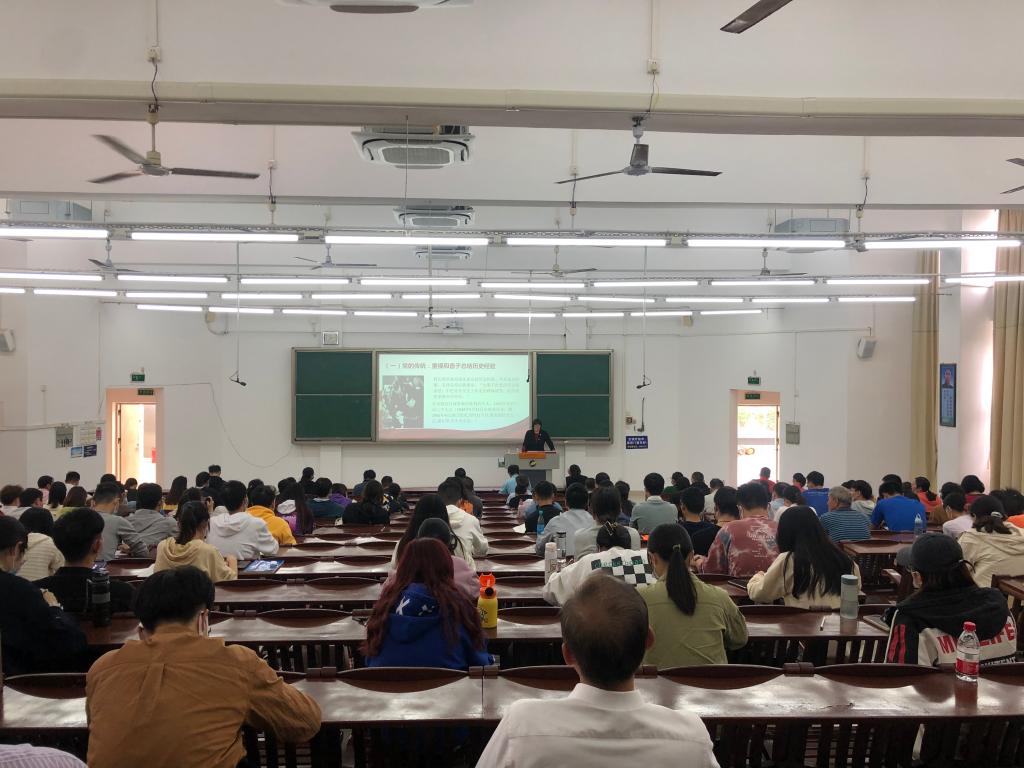 12月15日下午,水产学院党委在湖光校区钟海楼教室召开学习贯彻党的十九届六中全会精神宣讲报告会,学校党委理论宣讲团成员王爱云教授作学习贯彻党的十九届六中全会精神的宣讲报告,水产学院、省实验室建设办、珍珠研究所全体教职工和全体学生党员参加专题宣讲报告会。报告会由学院党委副书记王海燕主持。