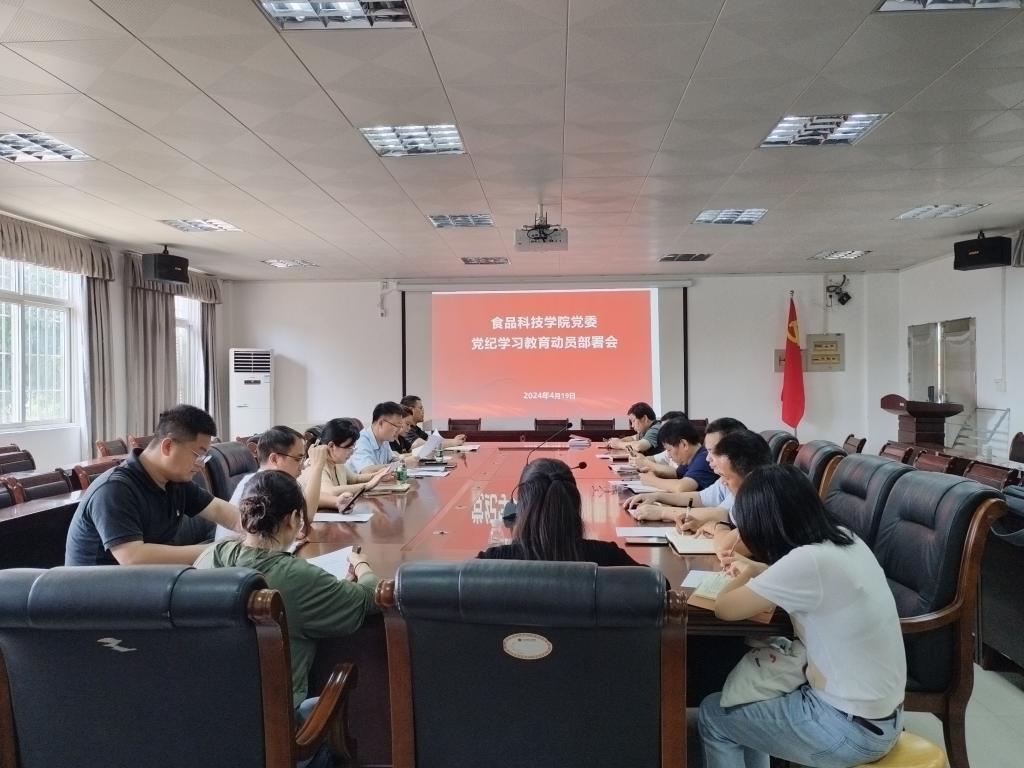 4月19日,食品科技学院党委召开党纪学习教育动员部署会,学院党委书记伍彬主持会议并作了动员讲话,学院领导班子成员、党支部书记、团委书记和组织员参加了会议。