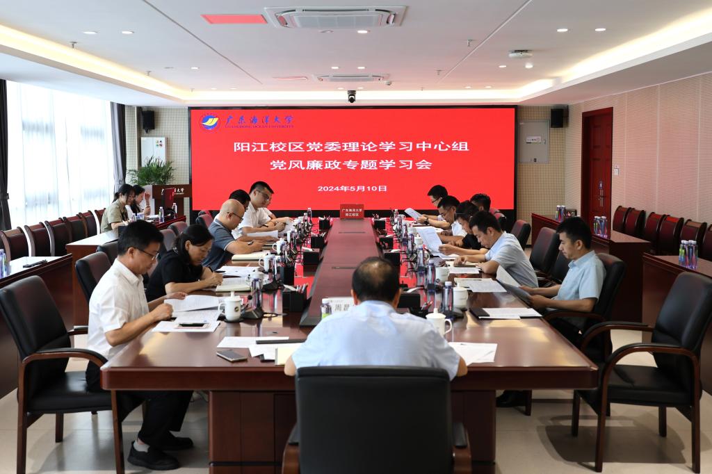 为增强全面从严治党永远在路上的政治自觉,推动党纪学习教育走深走实,5月10日上午,阳江校区党委理论学习中心组(扩大)开展党风廉政建设专题学习,深入学习贯彻习近平总书记在二十届中央纪委三次全会上发表重要讲话精神,贯彻落实《关于新形势下党内政治生活的若干准则》《广东海洋大学党员领导干部“八小时以外”活动监督管理规定》,开展党风廉政提醒集中谈话,签订党风廉政建设责任书。校党委常委、副校长,阳江校区管理办公室主任周昌仕主持会议。校区党委副书记丁永成以及校区各党总支书记、各机关部门临时负责人参加会议。