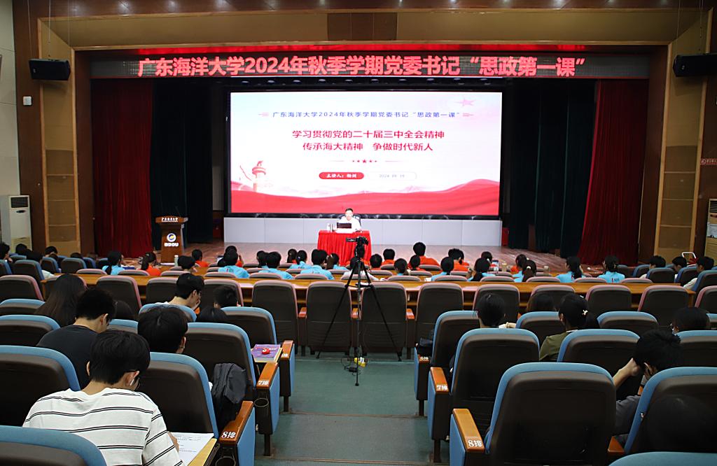 9月19日下午,学校党委书记杨洲以《学习贯彻党的二十届三中全会精神 传承海大精神 争做时代新人》为题,在湖光校区广学楼多功能厅开讲2024年秋季学期“思政第一课”,300余名学生代表现场听课,其余师生通过视频直播方式在线收看。