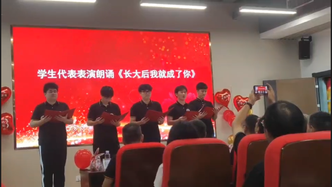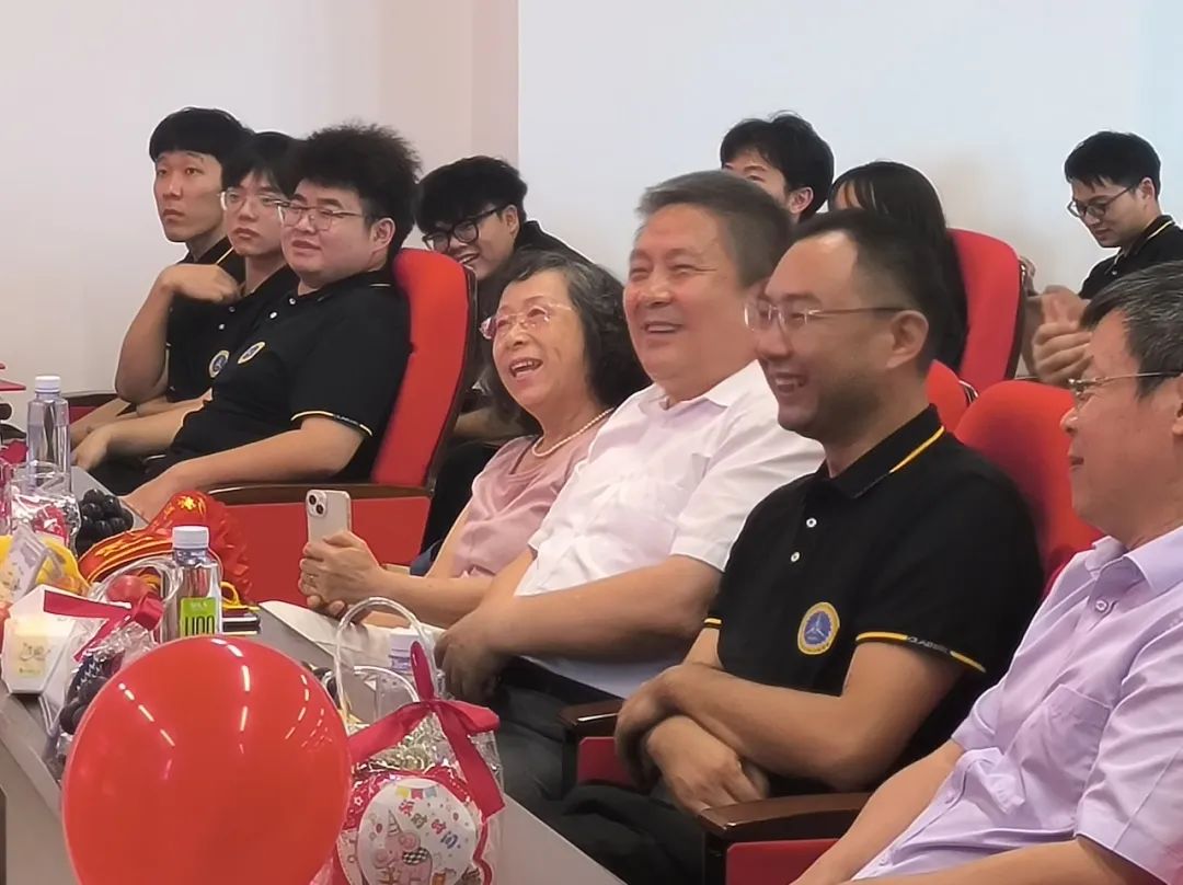 荣休仪式分为三个环节,分别为忆往昔岁月、颂今朝奉献以及送美好祝福。在这个特殊而庄重的仪式上,校区领导和机械与能源工程学院师生们齐聚一堂,见证王贵教授迈入人生新的篇章,荣休于这个充满记忆和情感的校区。在仪式上,王贵教授回顾了自己的职业生涯并表达了对国家和学校的感恩,毛琪代表校区致辞并为王贵教授戴上绶带,夏杏洲代表校区颁发纪念杯,陈扬枝代表学院颁发表彰牌匾并深情献唱一曲送别,学生代表献上深情朗诵,机械与能源工程学院全体教师通过视频献上祝福,仪式现场温馨而热烈。