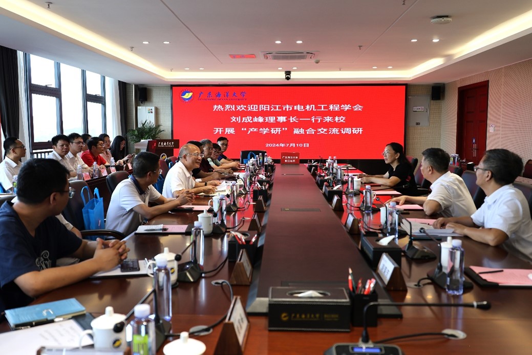 7月10日,阳江市电机工程学会刘成峰理事长携广东电网公司阳江供电局、阳江市鼎兴达企业管理有限公司、中能建投(阳江)新能源有限公司、阳江市大河水力发电有限公司、阳江市凯源电力设计有限公司等24位企事业单位领导和技术专家赴广东海洋大学机械与能源工程学院洽谈校企合作事宜。学院党总支书记周荣伟、院长陈扬枝、副院长郑海明,电气工程及其自动化教研室教师代表胡菊芳、姜良朋、薛文艳参与交流。