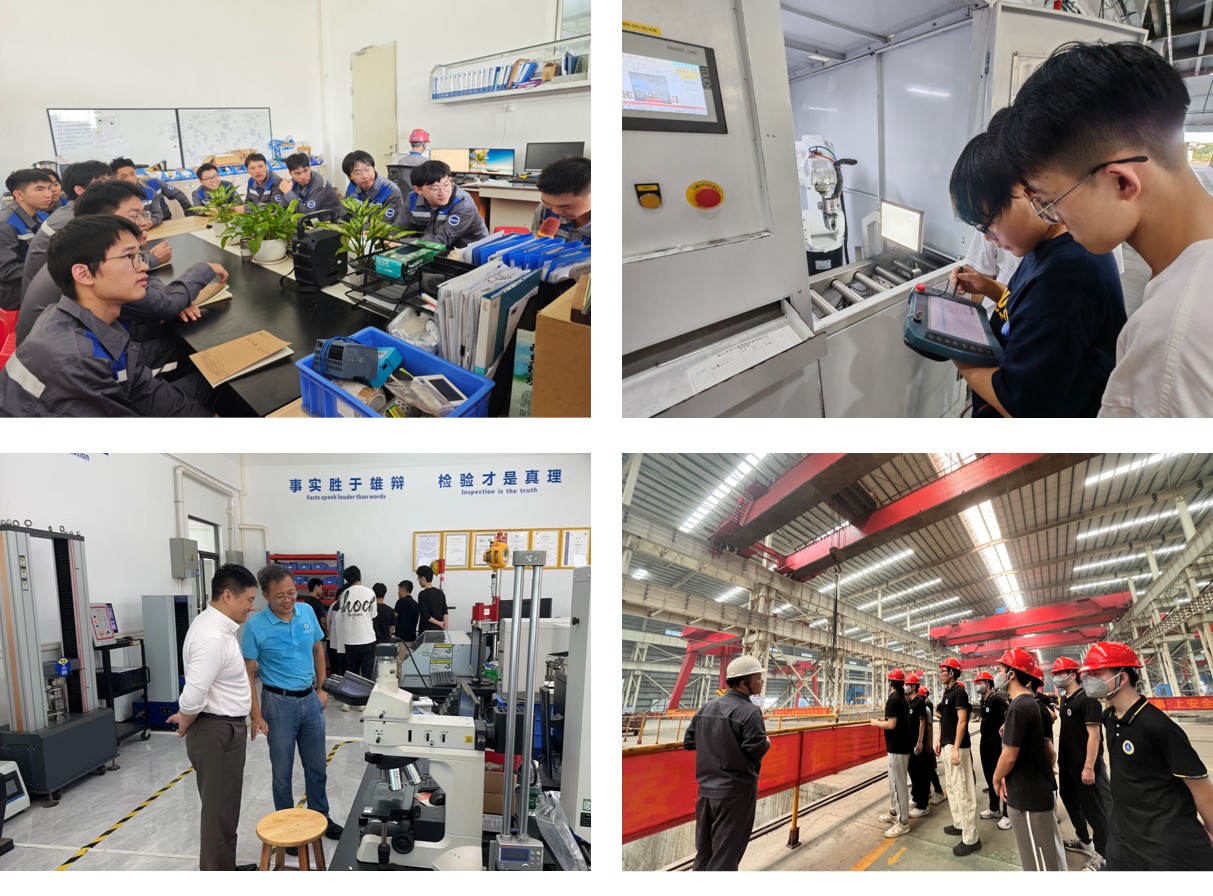 经过前期近三年时间的策划、建立校企合作关系和签订校企合作协议等准备工作,为响应国家高质量发展号召,助力阳江市产业科技创新,今年7月15日-8月15日,广东海洋大学阳江校区机械与能源工程学院组织首批130名“准大四”本科生“组团式”奔赴阳江当地9家企业,包括中节能(阳江)风力发电有限公司、广东史特牢紧扣系统有限公司、广东华电福新阳江海上风电有限公司、广东鉴衡海上风电检测认证中心有限公司、阳江市中乌巴顿技术研究院、昌龙科技 (阳江)有限公司、阳江市张小泉智能制造有限公司、阳江宏旺实业有限公司和广东龙马重工集团有限公司,开展为期一个月的暑期生产实习活动,以创新人才培养赋能产业新质生产力发展。
