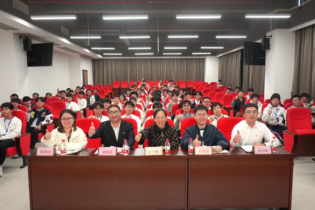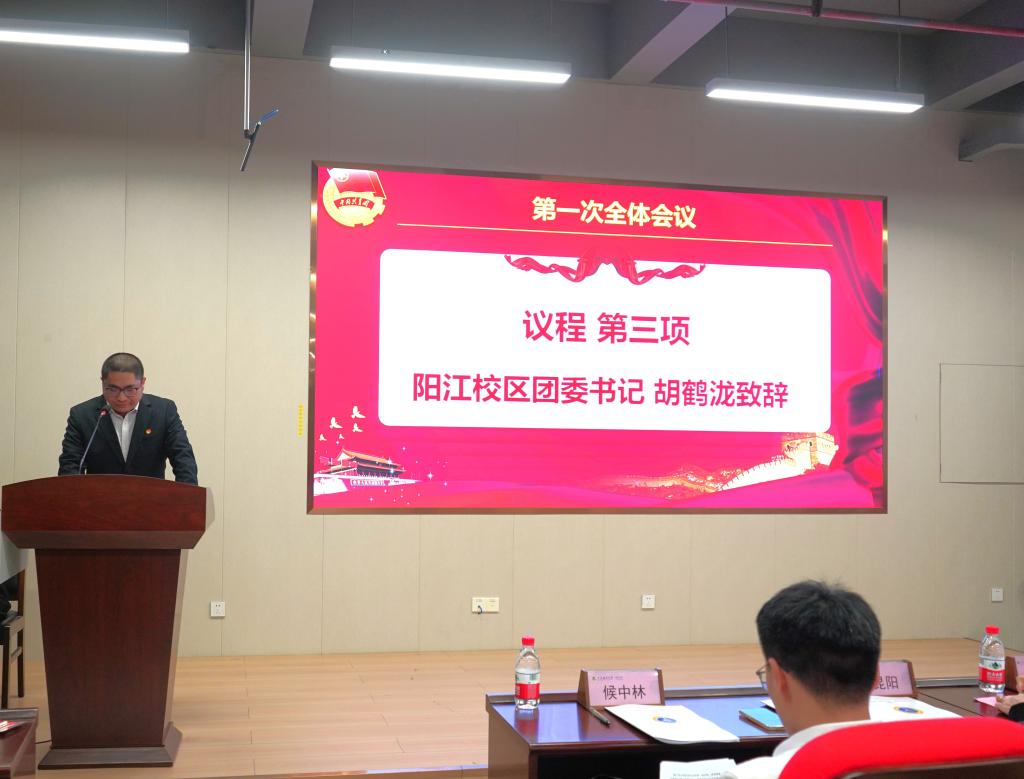 大会在国歌声中拉开序幕。胡鹤泷代表校区团委致辞。他充分肯定学院团学工作取得的成绩,并对学院团委和学生会工作提出希望。他要求学院团委和学生会要在党的二十大、二十届三中全会精神指引下,以习近平新时代中国特色社会主义思想为指导,坚持学习先行,塑造青年思想的灯塔;坚持服务至上,化身热情服务的使者;坚持改革驱动,勇担时代创新的先锋;不断加强自身建设,提高自身能力和素质,让学院团学组织真正成为同学们想得起、找得到、靠得住的力量。
