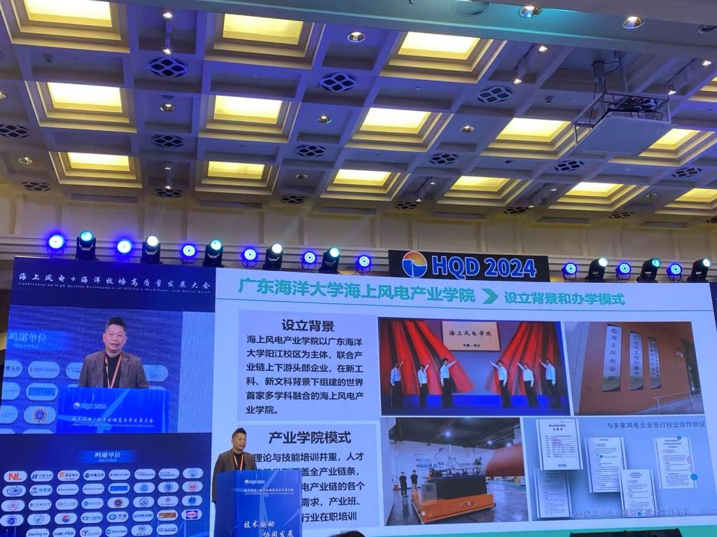 我院院长陈扬枝教授在本次大会进行了题为《广东海洋大学海上风电产业学院的探索与实践》的特邀报告,系统且全面地总结了海上风电产业学院自成立以来的办学历程,展示了海上风电产业学院的产学研成果,与十余家海上风电企业共建了实习实训基地和联合实验室,获批了国家发展改革委员会“十四五”教育强国中央预算投资储备项目——“广东海洋大学阳江校区海上风电产教融合实训基地”,报告引起了广大专家学者的热烈反响。