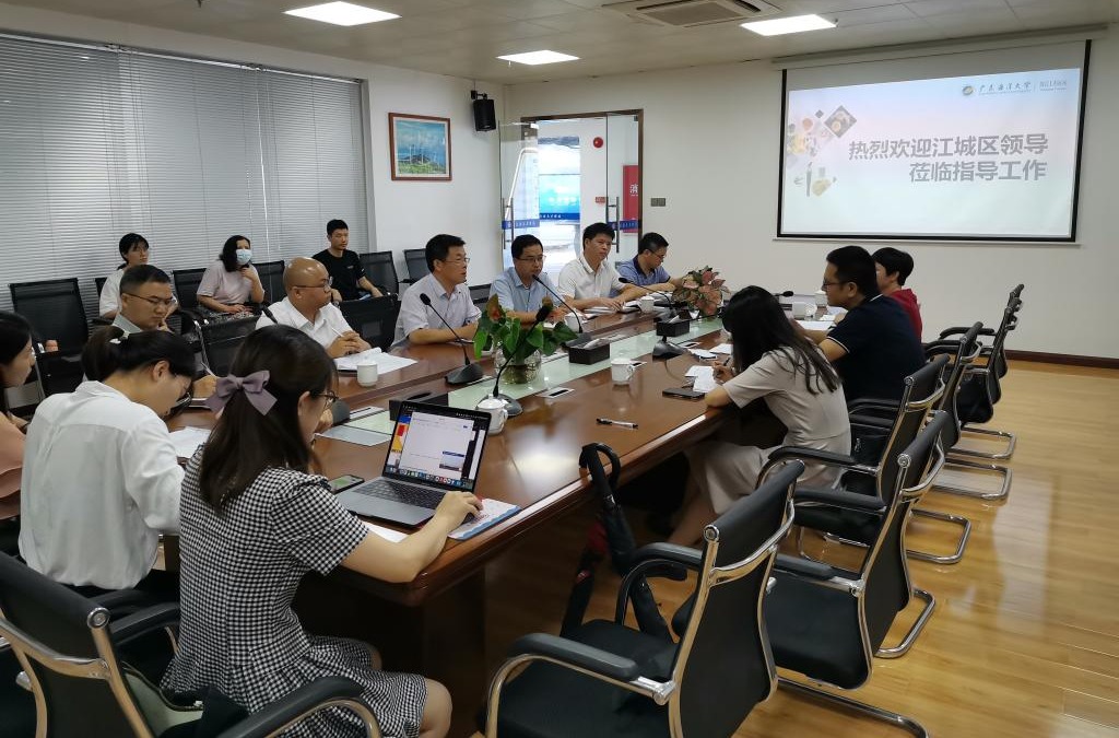 2021年6月23日上午,江城区组织部领导许文霆部长一行莅临本院指导工作。当日,“百名博士进江城,助力乡村大振兴”相关会议在阳江市国贸中心14楼会议室召开,广东海洋大学食品科技学院副院长夏杏洲携本院13位老师参与会议。