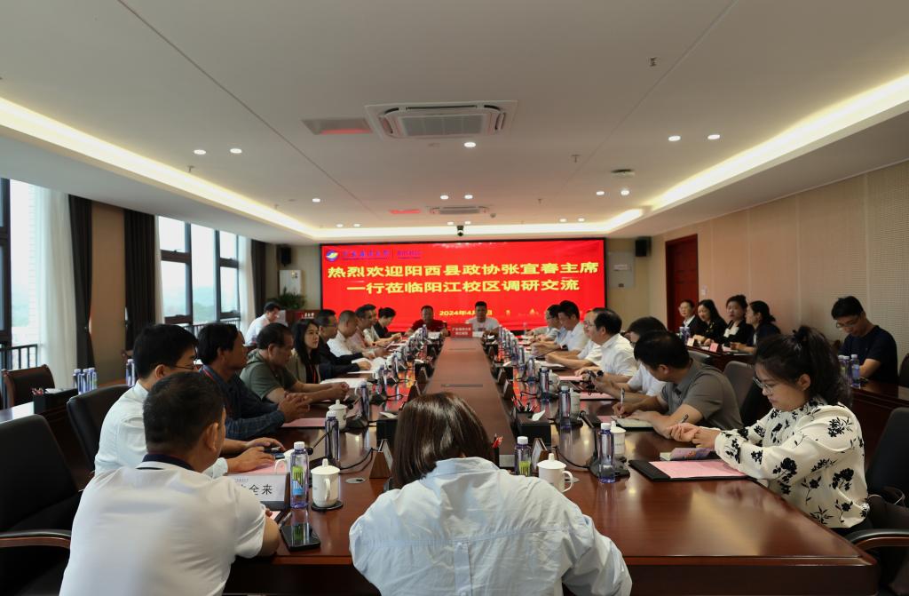 2024年4月9日,阳西县政协主席张宜春、副主席林进康率阳西县政协代表及企业代表一行13人来我院调研交流,校区十分重视本次交流活动,学校党委常委、副校长周昌仕、阳江校区党委副书记丁永成、校区党委副书记陈永强等参加活动。