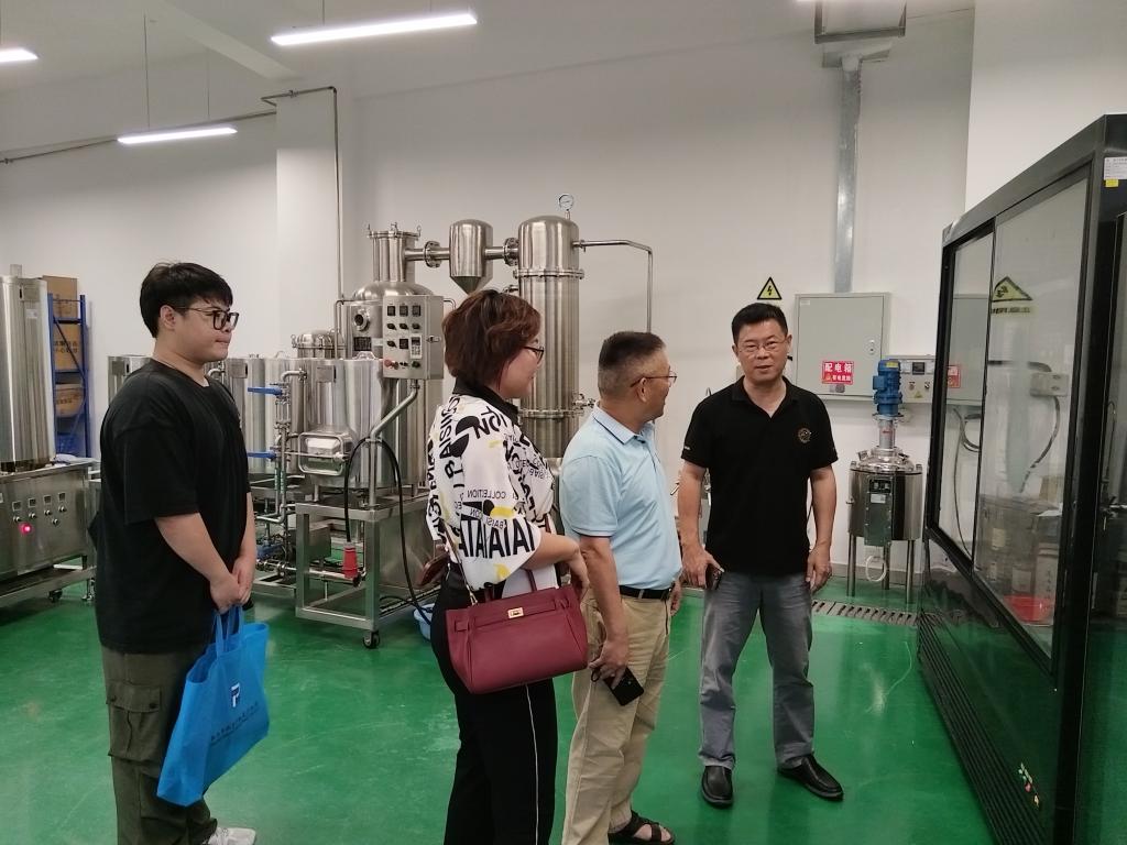 杨淼棋一行先参观岭南特色果蔬绿色加工产业学院,夏杏洲书记介绍了食品科学与工程学院以及产业学院的发展情况。随后,双方在海科楼404会议室进行了座谈交流。主要就阳江市知识产权保护协会与学院对接、知识产权保护、科研成果转化、产学研合作等方面进行了深度交流。