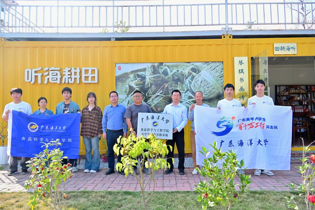 为加强校企合作,拓宽人才培养渠道,加强和改进大学生社会实践工作,12月11日下午,广东海洋大学食品科学与工程学院与阳江市听海耕田农业科技有限公司于闸坡镇北汀村听海耕田海水稻种植基地举行大学生社会实践基地授牌仪式。食品科学与工程学院党总支书记夏杏洲、副院长杨新河、团学指导老师黄磊、院学生会代表、“百千万工程”突击队“海稻先锋”团队队员,听海耕田有限公司总经理吴盛伟、艺术家方亦秀参加了此次授牌仪式。