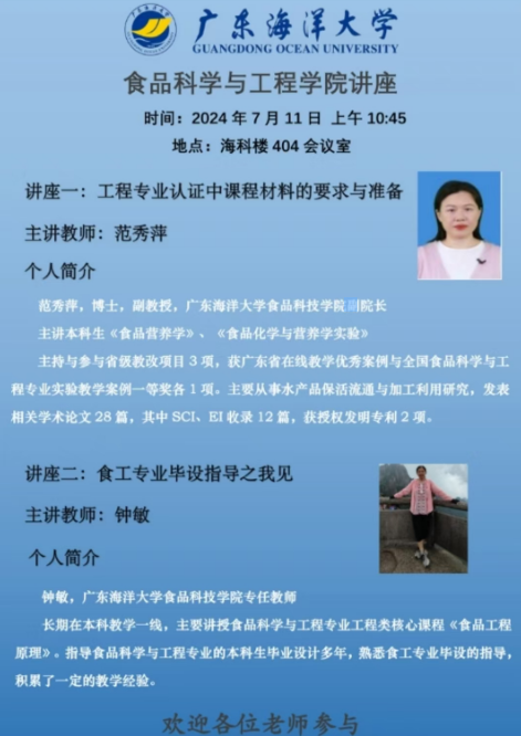 主题:工程专业认证中课程材料的要求与准备、食工专业毕设指导之我见。