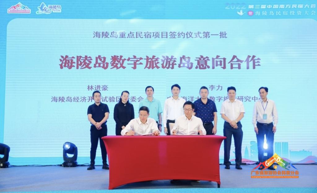 今日,在2022第三届中国南方(海陵岛)民宿大会召开之际,阳江海陵经济开发试验区管委会与广东海洋大学数字旅游研究中心签署了“关于共建海陵数字旅游岛合作意向书”,阳江海陵区委副书记、管委会主任林进豪和华南理工大学教授、广东海洋大学数字旅游研究中心主任李力分别代表合作双方在意向书上签字。这意味着全国第一个数字旅游岛项目启动,标志着阳江乃至广东旅游产业数字化转型取得新进展。