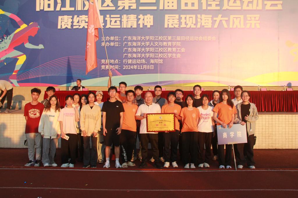 2024年11月8日,广东海洋大学阳江校区第三届田径运动会在行健田径场举行。商学院共有26名教职工运动员和56名学生运动员参加本次校区运动会。
