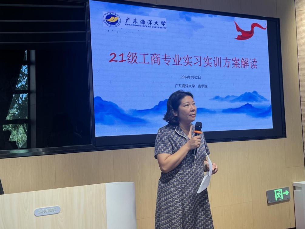 在实习动员会上,21级学生简菊慧代表学生发言,“走出校门的那一刻,我们便代表着海大的形象,因此我们要时刻铭记‘广学明德,海纳厚为’的校训,积极维护并展现我们海大人的良好形象和精神风貌”。并代表学生表决心“在实践中不断成长,迎接更大的挑战”。