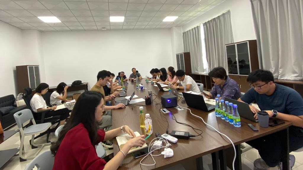 接着,实验室设备、教学设备、办公家具接收小组三个副组长分别就每个组的接收任务介绍各自的接收方案。实验室设施设备接收小组的黄昕博士和曾泰源老师汇报了该组项目的进展情况和接收方案。周婷老师对教学设备的工作进度进行了汇报,张欢老师就家具进场情况和接收方案进行汇报。