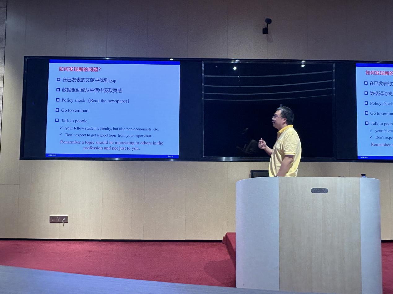 在讲座中,农汇福以自身丰富的科研经历为例,结合多篇合作论文的创作过程,深入浅出地阐述了科研的本质与价值。他从如何选择科研方向、如何阅读与评析论文、如何发现新的研究问题、如何设计创新的研究方法以及如何吸引审稿人等多个方面进行分享,帮助与会者理解科研工作的核心要素。在讲座中,农汇福分享了自己在学术道路上的成长经历,强调了科研的探索性和创新性,鼓励与会者勇于尝试不同的研究方法,积极寻找潜在的研究课题。