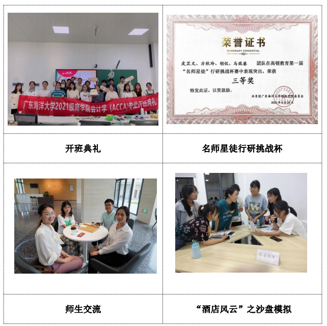 ACCA班由广东海洋大学商学院选拔学生单独组建并实施教学,并邀请国内高水平ACCA专业讲师、知名学者教授团队来校执教;讲师团队具备双语教学的技能,重视授课效果及通过水平。