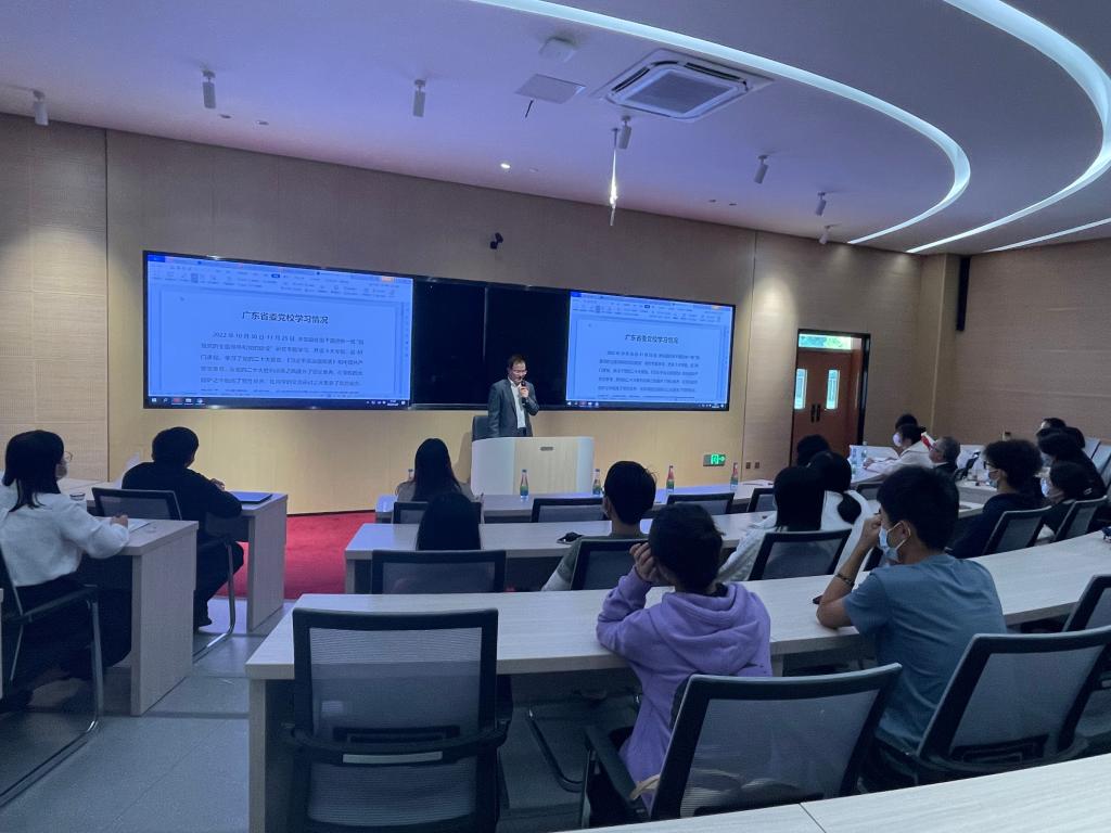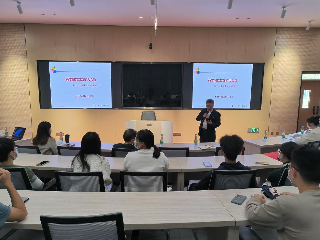 党的二十大已胜利闭幕一个多月,全国上下掀起了学习二十大报告的新高潮,为响应党的号召,深入学习领悟党的二十大精神,结合《中共广东海洋大学阳江校区委员会关于开展党的二十大精神全覆盖学习宣讲活动的实施方案》的相关要求,12月7日下午,校区党委副书记、管委会常务副主任、商学院联系领导周昌仕同志到商学院宣讲党的二十大精神。商学院党支部书记唐志军主持会议。学院全体党员,教师入党积极分子,学生团支部书记,班长共40余人参加会议。