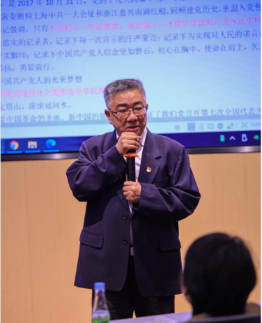 随后,进行了书记上党课,唐书记以《二十大报告原文中的23个关键词》为题,对二十大报告进行了讲解。通过讲解要求全体党员要把握好习近平新时代中国特色社会主义思想的世界观和方法论,坚持好、运用好贯穿其中的立场观点方法。用思想引领行动,以行动践行思想,建设好商学院。最后,黄昕博士和翁晓诗同学分别代表师生分享了他们学习二十大的体会。