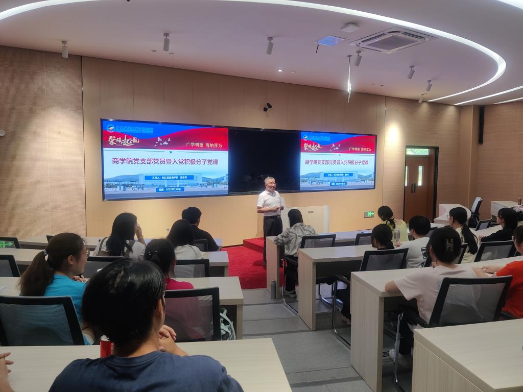 随后,全体教职工党员和学生入党积极分子齐聚济航楼一楼报告厅,共同参加“商学院党支部党员暨入党积极分子专题党课”,由院党支部书记唐志军同志主讲。课上,唐书记围绕着“中国共产党是什么,要干什么”这一主题,先后从“全心全意为人民服务、为实现理想不懈奋斗、具有强大领导力执政力、始终保持旺盛生机和活力、为人类和平与发展贡献力量”等五个方面进行详细讲解。同时,他勉励参会的同志们要做到不忘初心、牢记使命,要大力弘扬伟大建党精神,以史为鉴、开创未来,埋头苦干、勇毅前行。