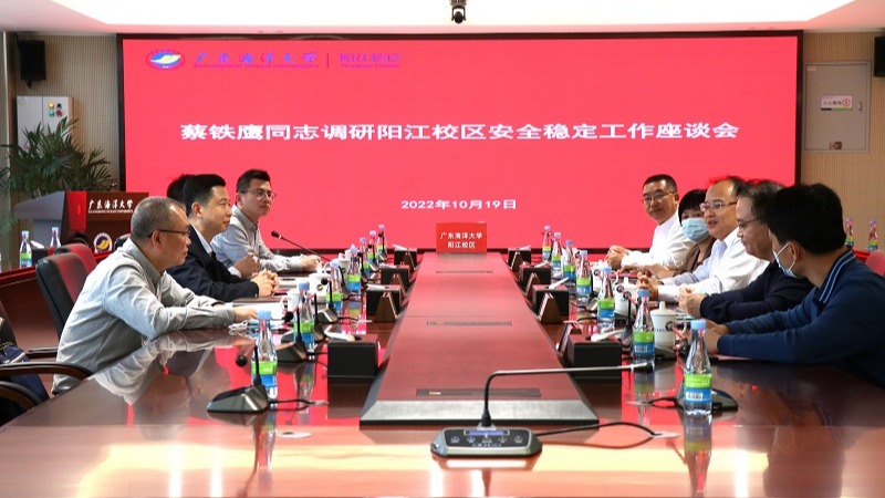 10月19日,阳江市委常委、政法委书记蔡铁鹰率队到广东海洋大学阳江校区调研校园安全稳定工作。在校区党委副书记、管委会常务副主任周昌仕的陪同下,调研组到厚为楼、商学院、监控室和图书馆察看,接着召开座谈会并听取有关工作汇报。会上,周昌仕代表校区欢迎调研组到校区检查指导,并就我校的疫情防控、安防建设、食品安全、安全教育以及消防安全等工作做了详细汇报。听取汇报后,蔡铁鹰对校区的安全稳定工作表示肯定,并就下...