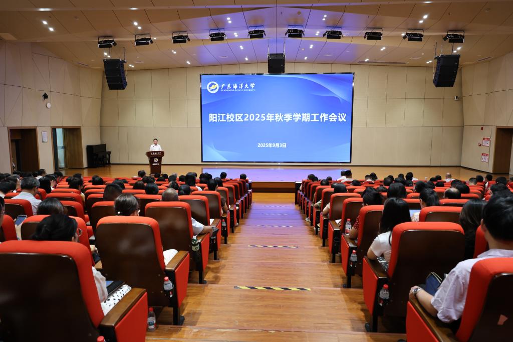 秋阳为笔,硕果为章。9月3日下午,阳江校区在海纳楼113多功能厅召开2025年秋季学期工作会议。学校党委常委、副校长、阳江校区党委书记、管理办公室主任周昌仕出席会议并作工作部署。阳江校区党委副书记丁永成主持会议。阳江校区党委副书记麦冬宁以及校区各单位部门负责人和全体教职工参加会议。周昌仕以《逐浪海洋强国,奋进建强校区》为题,传达学习了学校新时代高质量发展大会精神和学校2025年10项重点工作,总结回顾了校区上...