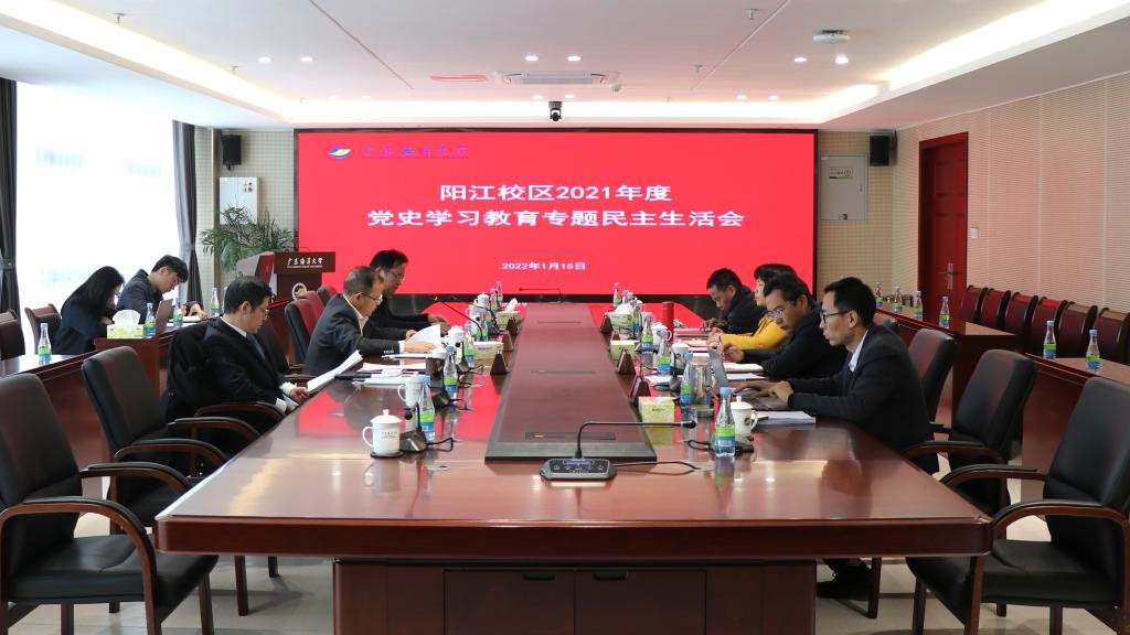 经上级党组织批准,1月15日,阳江校区党委领导班子在校区海纳楼712会议室召开2021年度党史学习教育专题民主生活会。校区党委领导班子成员参加会议,校区管委会成员列席会议。受校党委常委、副校长,校区党委书记、管委会主任宁凌的委托,会议由校区党委副书记、管委会常务副主任周昌仕主持。本次专题民主生活会的主题是:大力弘扬伟大建党精神,坚持和发展党的百年奋斗历史经验,坚定历史自信,践行时代使命,厚植为民情怀,勇...