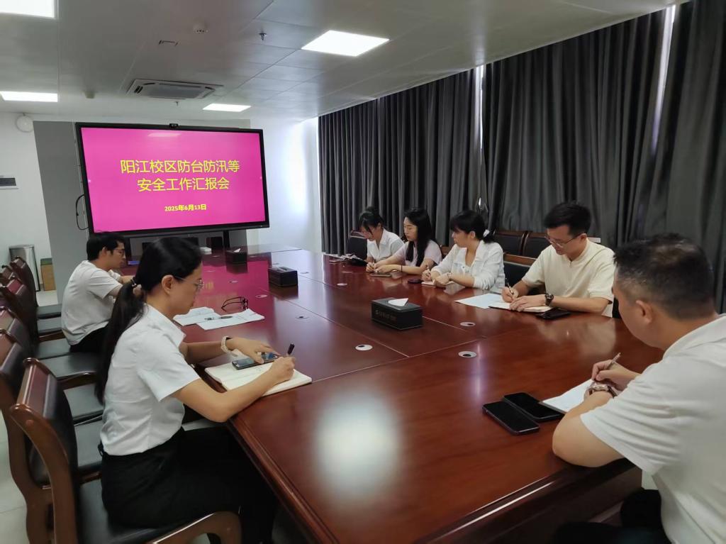 为切实保障校园安全稳定,有效应对今年的1号台风“蝴蝶”,6月13日下午,阳江校区党委副书记麦冬宁组织召开校区防汛防台专项工作会议,并对校区重点区域进行安全检查。后勤服务部部长祝敏丹及部门工作人员、物业和医务室参加。