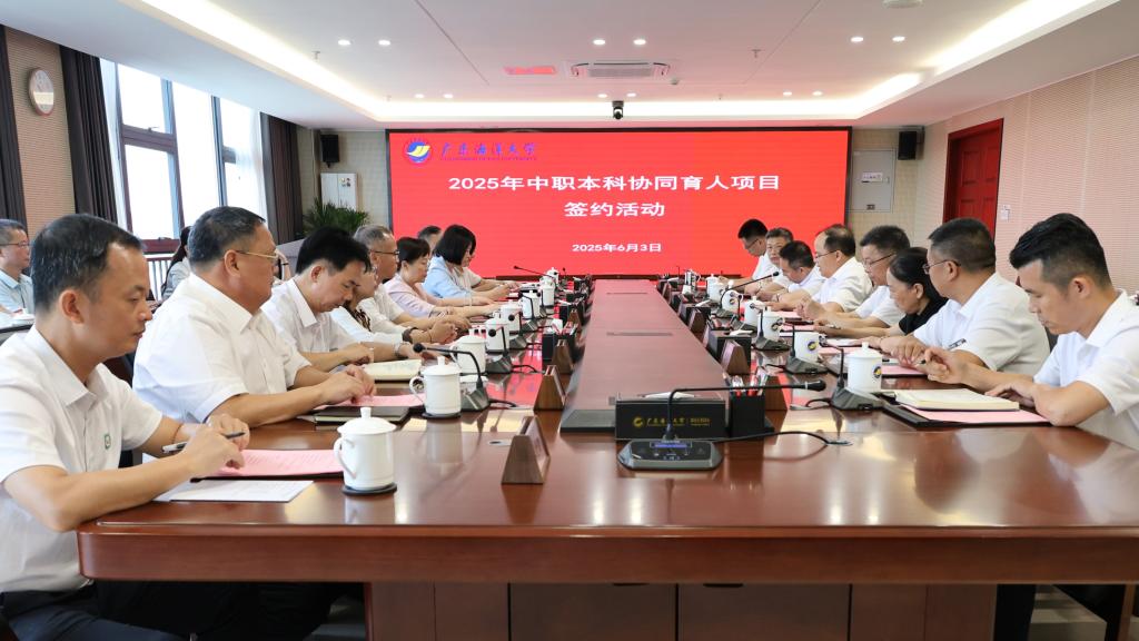 6月3日上午,阳江市2025年中职本科协同育人项目签约活动在阳江校区海纳楼712会议室举行。阳江市副市长柯燕,广东海洋大学党委常委、副校长、阳江校区党委书记、管理办公室主任周昌仕,阳江市副秘书长黄怡,阳江市教育局局长利社会,阳春市副市长蓝瑜,阳江校区党委副书记丁永成、麦冬宁以及阳江市、阳春市、阳江校区、阳江市第一职业技术学校(以下简称阳江一职)、阳春市中等职业技术学校(以下简称阳春中职)相关负责同志出席活动。