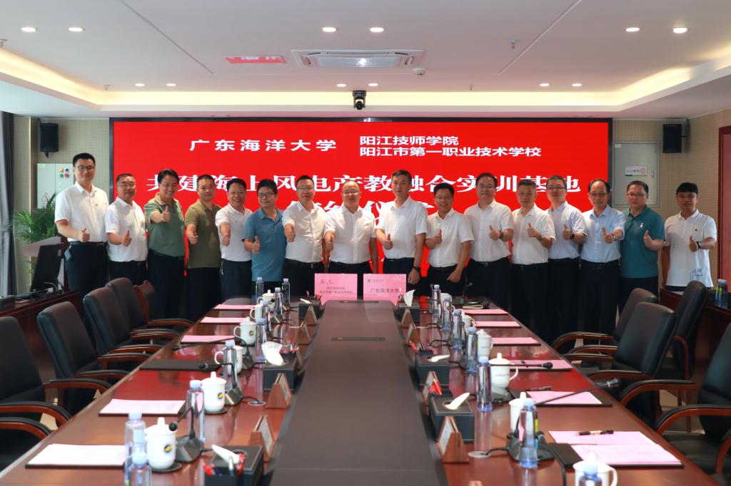 7月4日下午,我校与阳江技师学院、阳江市第一职业技术学校共建海上风电产教融合实训基地签约仪式在校区海纳楼712会议室举行。党委常委、副校长、阳江校区党委书记、校区管理办公室主任周昌仕与阳江技师学院院长、阳江市第一职业技术学校校长林进杰分别代表两校签约,阳江校区党委副书记丁永成、陈永强,以及阳江技师学院、阳江市第一职业技术学校党委书记谭志葆,副院长陈志军、洪海等领导参与见证。