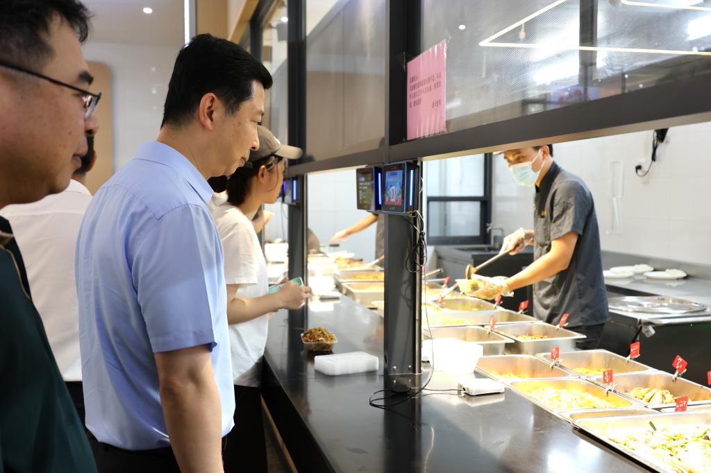 蔡铁鹰一行深入校园24小时监控室、教学楼和桃李食苑、嘉禾食苑等地进行现场调研,详细了解校区监控设施、学生学习环境以及校园食品安全等情况,并在食堂进行陪餐。调研组一行在嘉禾食苑一楼大众窗口排队、点菜、打饭,与同学们共进晚餐。